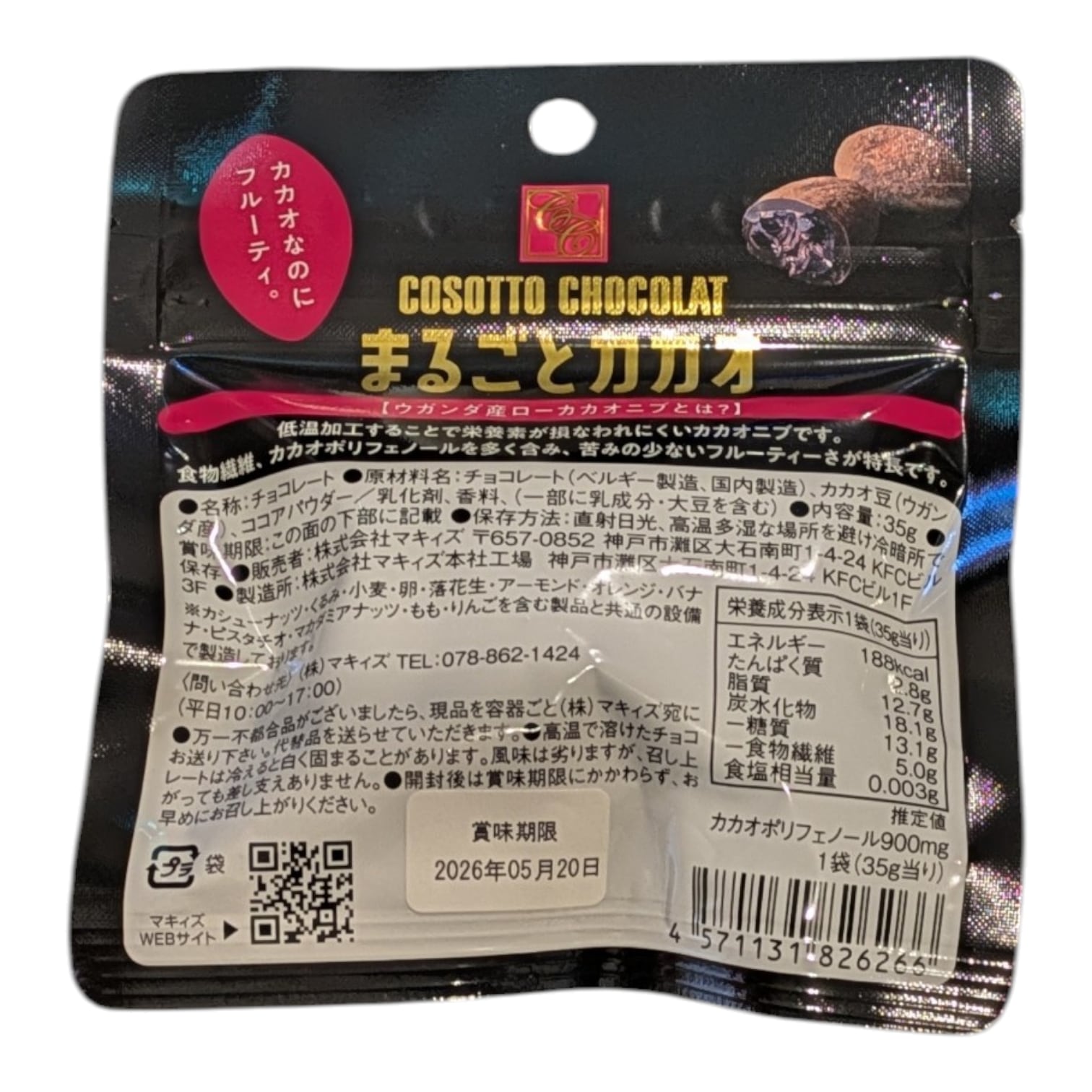 ローカカオニブをそのまま使った「まるごとカカオショコラ」は