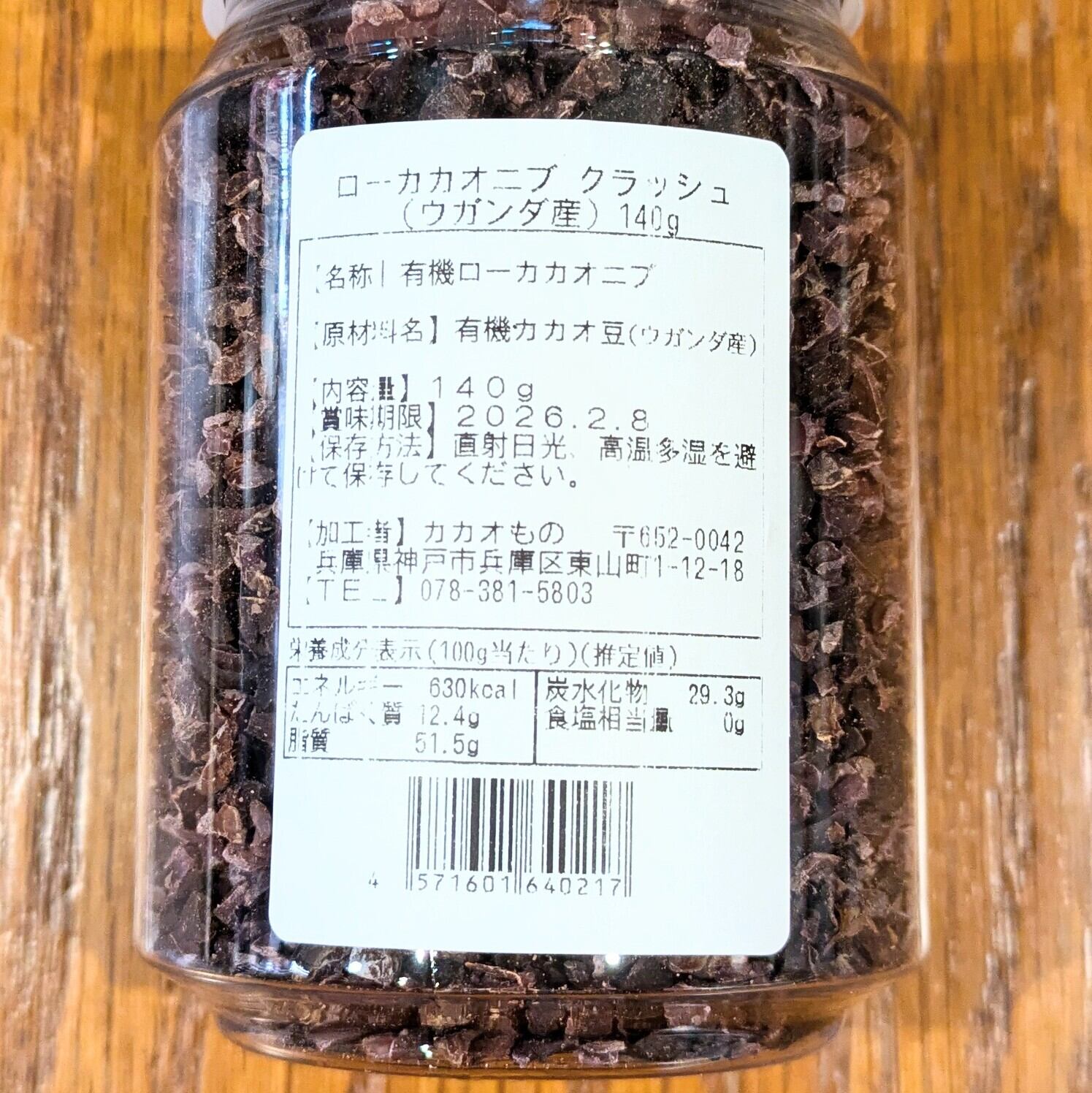 【カカオもの】発酵カカオニブ クラッシュタイプ140g ウガンダ産 低温仕込み発酵カカオ豆 ローカカオ豆
